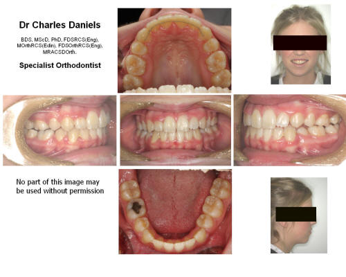 Rapid maxillary expansion, extraction of 4 premolars and fixed braces